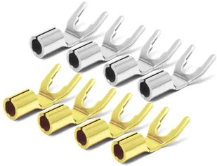 o materiał: miedź OFC (Oxygen Free Copper) o powierzchnia: srebro+pallad (SPYT) lub złoto (GYT) o sposób łączenia: lut o średnica gniazd głośnikowych: 6 mm lub 8 mm o maksymalna średnica kabla: 5 mm2 o sposób pakowania: 4 szt.