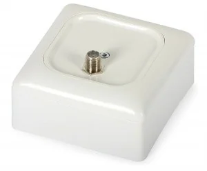 Gniazdo dostosowane do montażu natynkowego wykonane jest z tworzywa ABS. Przekazywanie sygnałów w.cz. następujące za pośrednictwem osadzonego w obudowie przejścia kątowego gniazdo F - gniazdo F.