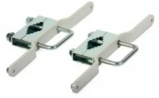 Uchwyt masztowy do szaf hermetycznych, umożliwiający montaż na masztach o średnicy od 40 do 60 mm. Montaż do szafki za pomocą śrub montażowych M5, montaż do masztu za pomocą cybantów.