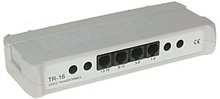 TR-16 przeznaczony jest do przesyłu sygnału wizyjnego z szesnastu kamer za pomocą skrętki komputerowej. Urządzenie dopasowuje impedancję kabla koncentrycznego 75$446 do impedancji przewodu symetrycznego zapewniając przesył sygnału wizyjnego do 400m.