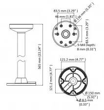 Adapter sufitowy o długości 565mm. Pasujący do modeli: DS-2CD2Hx5FWD, DS-2CD2Hx3G0.