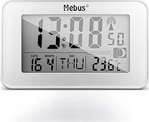 MEBUS digitaler Funk-Wecker mit Mondkalender, Beleuchtung, Innenthermometer, Schlummer-Funktion/Material: Kunststoff/Farbe: Weiß/Modell: 51461