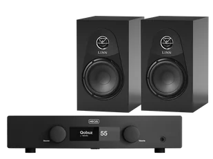 Zestaw składający się ze wzmacniacza zintegrowanego Hegel H150 oraz kolumn Linn 119.