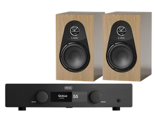 Zestaw składający się ze wzmacniacza zintegrowanego Hegel H150 oraz kolumn Linn 119.