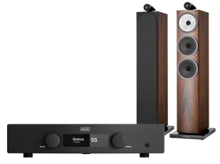 Zestaw składający się ze wzmacniacza zintegrowanego Hegel H150 oraz kolumn Bowers & Wilkins 703 S3.