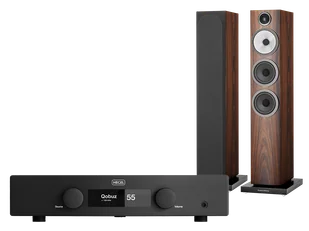 Zestaw składający się ze wzmacniacza zintegrowanego Hegel H150 oraz kolumn Bowers & Wilkins 704 S3.