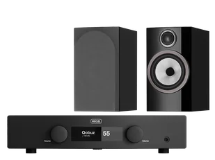 Zestaw składający się ze wzmacniacza zintegrowanego Hegel H150 oraz kolumn Bowers & Wilkins 706 S3.