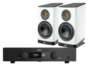 Zestaw składający się ze wzmacniacza zintegrowanego Hegel H150 oraz kolumn ELAC Vela BS403.2.
