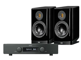 Zestaw stereo składający się ze wzmacniacza zintegrowanego Hegel H95 oraz głośników ELAC Vela BS404.2