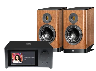 Zestaw stereo składający się ze wzmacniacza sieciowego NAD C 700 V2 oraz głośników ELAC Vela BS404.2