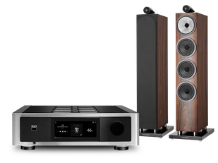 Zestaw składający się ze wzmacniacza strumieniującego NAD M33 V2 oraz dwóch głośników Bowers & Wilkins 702 S3