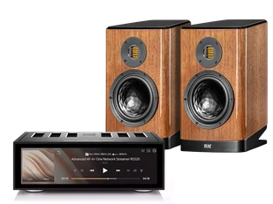 Zestaw stereo składający się z RS520 All in One streamer + wzmacniacz oraz głośników ELAC Vela BS404.2