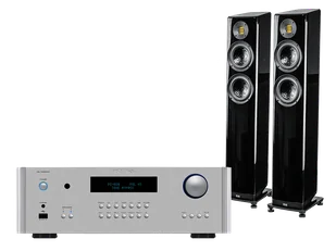 Zestaw stereo składający się ze wzmacniacza zintegrowanego Rotel RA-1592 MkII oraz głośników ELAC Vela FS407.2.
