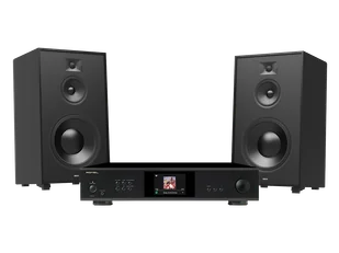 Zestaw stereo składający się z odtwarzacza strumieniowego z wbudowanym wzmacniaczem Rotel S14 oraz kolumn Indiana Line Utah 8.