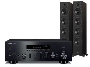 Zestaw stereo składający się z amplitunera stereo Yamaha MusicCast R-N600A oraz kolumn Indiana Line Diva 6.