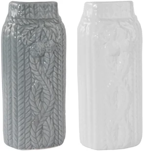 Zestaw dwóch nawilżaczy w kolorach białym i szarym z ozdobnymi reliefami na froncie. Zapakowane w kartonik. Nawilżacz ceramiczny służy do nawilżania pomieszczenia w okresie grzewczym. Nawilżacz przystosowany jest do zwieszenia na kaloryferze dzięki stalowym hakom. Skuteczność nawilżania to od 10 do 200 ml na dobę, w zależności od wielkości nawilżacza.