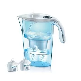 Pojemność całkowita czajnika 2,3 l, objętość przefiltrowanej wody 1,2 l, mechaniczny wskaźnik wymiany filtra, pokrywa na zawiasach, liczba wkładów filtrujących w opakowaniu 2 szt