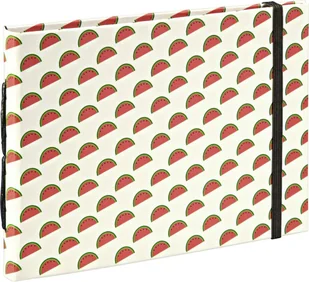 Elastyczna opaska bezpiecznie trzyma wszystko razem i nadaje albumowi elegancji. mały album na spersonalizowany projekt funky melon motyw wewnętrzne strony wykonane z papieru kraft, oferują miejsce na spersonalizowany projekt do wklejania zdjęć natychmiastowych, zdjęć, wizytówek i innych wspomnień, do rozmiaru zdjęcia 11x15 cm z kopertą z tyłu albumu, do przechowywania małych pamiątek, takich jak bilety, monety itp. elastyczna opaska dodatkowo przytrzymuje album i nadaje mu ostateczny wygląd Główne cechy Waga i wymiary Szerokość 180 mm Wysokość 130 mm Funkcje Kolor produktu Wielokolorowy Wymiary nośnika (pojedynczy arkusz) 11 x 15 cm Liczba nośników w opakowaniu 20 arkuszy Ilość w opakowaniu 1 szt