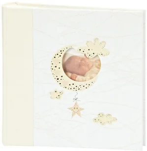 Album dziecięcy BAMBINI wysokiej jakości okładka z nadrukiem artystycznym z wyglądem lnianego grzbietu tłoczenie ślepe i foliowe z wycięciem na zdjęcie na Twoje osobiste zdjęcie z polami na napisy i archiwum CD/negatyw na 200 zdjęć 10x15 cm format: 23x22 cm Album na notatki dla niemowląt Bambini Album na notatki w oprawie książkowej z wysokiej jakości laminowaną okładką z wytłoczonym złotym motywem dziecka, gwiazdek i chmurek. Album jest dodatkowo wzbogacony o wycinany kształt do personalizacji własnym zdjęciem. Album oferuje miejsce na 200 zdjęć o wymiarach 10 x 15 cm i posiada pola do etykietowania osobistych wpisów oraz archiwum płyt CD i negatywów. Bambini jest również jako album fotograficzny w dwóch rozmiarach oraz jako album na chrzciny i wnuki.