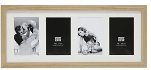 Ramka do galerii S66KB4 natura 4 zdjęcia 10x15 cm Drewniana ramka na zdjęcia w naturze średni szeroki profil bloku do zawieszenia w formacie pionowym i poziomym z podstawką do formatu poziomego rama z normalnym szkłem, tylna ściana z MDF za 4 zdjęcia w formacie 10x15 cm