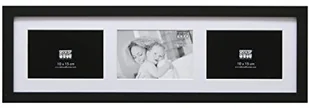 Ramka do galerii S66KC3 czarna 3 zdjęcia 10x15 cm Drewniana ramka na zdjęcia w kolorze czarnym średni szeroki profil bloku do zawieszenia w formacie pionowym i poziomym z podstawką do formatu poziomego rama z normalnym szkłem, tylna ściana z MDF za 3 zdjęcia w formacie 10x15 cm