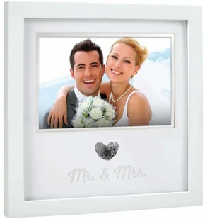 Elegancka ramka na zdjęcia ślubne marki Pearhead z pewnością będzie idealną dekoracją i pamiątką pozwalającą na zawsze zapamiętać Twój wyjątkowy dzień. Biała, drewniana ramka marki Pearhead zawiera niebrudzący wkład atramentowy, pozwalający spersonalizować ramkę za pomocą odcisków kciuków partnera i własnych tworzących kształt serca. Po prostu umieść kciuk na wkładce atramentowej, stroną z tuszem do dołu, a następnie odbij odciski na białym passe-partout. Twoja druga połowa powinna zrobić to samo, aby uzyskać piękny nadruk w kształcie serca. Pozwól, aby wydruki wyschły przez 24-48 godzin i umieść swoje ulubione zdjęcie, o wymiarach 10 x 15 cm, z dnia ślubu w ramce.