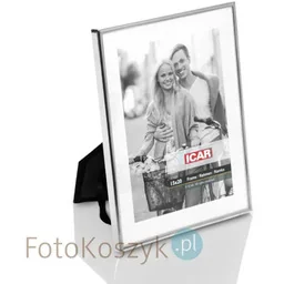 Metalowa ramka fotograficzna na zdjęcie wielkości 15 na 20cm. Ładna, solidna, ciężka ramka wykonana jest ze srebrnego metalu. Metal jest błyszczący, ramka jest cienka. Z tyłu ramka wykończona jest czarnym aksamitem. Ramka zapakowana jest w pergamin i w białe pudełko.
