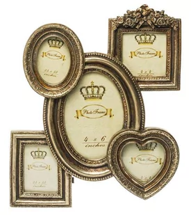 Ramka na zdjęcia pałacowa złota 5 zdjęć złota 32x26 do powieszenia lub postawienia 68912 Rozmiar: 32x26 Kolor: złoty Materiał: tworzywo sztuczne OPIS: Piękna pałacowa ramka w kolorze antycznego złotego na 5 zdjęć wykonana z polyresingu.
