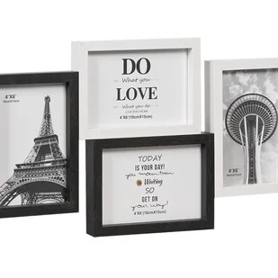 Ramka Na Zdjęcia Wielokrotna Mozaika Drewno MDF Ściana Biała Czarna 4 zdjęcia 10x15 cm