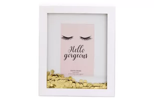 Ramka ozdobna z konfetti, Rzęsy, Hello gorgeous, biała, 24 cm