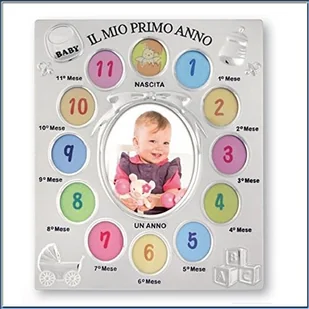 Galeria zdjęć jako kalendarz miesięczny Ramka na 12 zdjęć 4x5 cm i jedno zdjęcie 10x15 cm posrebrzana z aksamitnym tyłem Ramka ze stojakiem do ekspozycji Format: 23x28 cm Miesiące lub galeria zdjęć z włoskim oznaczeniem
