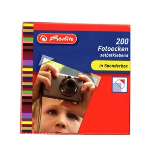 narożniki do zdjęć wykonane z dwustronnej, samoprzylepnej transparentnej foli, umożliwiającej umieszczenie zdjęcia w albumie, bez konieczności jego przyklejania. W opakowaniu znajduje się 200 sztuk w kartoniku na wysuwalnej, zro