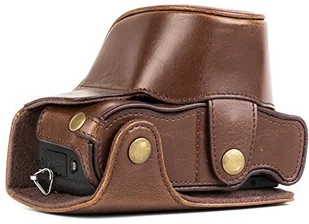 MegaGear MG1301 Ever Ready skórzane etui i pasek z dostępem do baterii i soczewką 12-32 mm do aparatu Panasonic Lumix DMC-GX85/GX80 - ciemnobrązowy