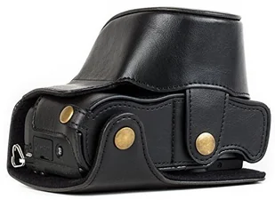 MegaGear megagear "zawsze gotowa" Panasonic skórzana torba na aparat łatwy w instalacji, statyw i pracy w firmie obwodowej akcesoria kompatybilny z Panasonic Lumix GX85, GX80 12 32 MM, czarny MG1300