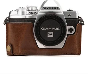MegaGear megagear "zawsze gotowa" skórzana torba na aparat do Olympus OM-D E-M10 III Half-Bottom pokrowiec ochronny wytrzymały, odporność na zarysowania i uderzenia, ciemnobrązowy MG1351