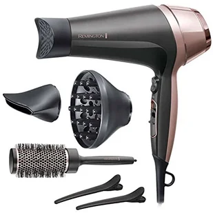 Remington Hair Dryer Ion [Curls & Waves & Straight] Curl-Straight (2200 W, w tym 3 nasadki do stylizacji: dysza stożkowa i dyfuzor do stylizacji loków, okrągła szczotka 45 mm i klipsy, 3 ustawienia ciepła i 2 ustawienia wentylatora) D5707