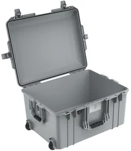 PELI Air 1607 Lekka ochronna skrzynia na kółkach na osprzęt do drona i sprzęt fotograficzny, wodo- i pyłoszczelna, pojemność 63 l, wyprodukowana w USA, bez pianki, Kolor: Srebrny