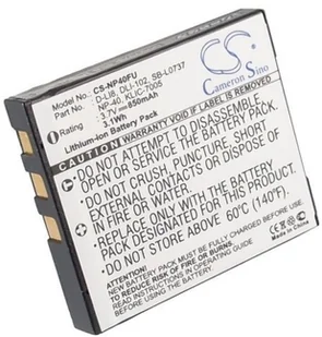 Zastępuje akumulatory: Benq: DLI-102 FujiFilm: NP-40 NP-40N Kodak: KLIC-7005 Medion: AK01 P42005 Pentax: D-LI8 D-Li85 Samsung: SB-L0737 SLB-0737 Technika: WGL-0101