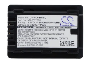 Cameron Sino Panasonic HC-VX870 VW-VBT190 3000mAh 10.80Wh Li-Ion 3.6V Cameron Sino)