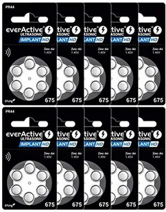 everActive Ultrasonic - baterie do aparatów słuchowych Implant HD 675 / PR44 - cynkowe baterie powietrzne do aparatów słuchowych - trwałe, wysoka gęstość energii, wolne od rtęci - pudełko 60 szt.