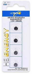 HEITECH Promotion GmbH HEITECH 4-pak AG4 baterie alkaliczne 1,5 V - LR66 / L626 / LR626 / SR66 / SR626 / SR626SW / 177/377 - baterie guzikowe zabezpieczone przed wyciekiem i o długiej trwałości, 4 sztuki, 0400532 04000532