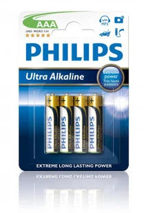 Baterie Ultra Alkaline AA 4szt. blisterBaterie alkaliczne Philips w ogóle nie zawierają kadmu, rtęci i ołowiuGwarantujemy, że baterie alkaliczne Philips nie zawierają takich szkodliwych metali ciężkich, jak kadm, rtęć czy ołów. Kolory ułatwiają rozpoznanie rozmiarów bateriiBy ułatwić rozpoznawanie najpopularniejszych rozmiarów baterii, stosujemy kolorowe oznaczenia zgodne z normami branżowymi. Łatwe do zrozumienia ilustracje niewymagające opisuUniwersalne ilustracje na opakowaniu objaśniają przeznaczenie i sposób użycia baterii. Baterie alkaliczne są 6x lepsze niż przeciętne baterie cynkowo-węgloweBaterie alkaliczne są sześć razy lepsze niż przeciętne baterie cynkowo-węglowe.