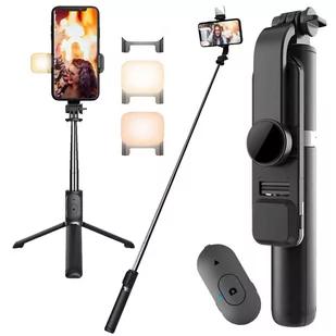 Selfie stick statyw Alogy Tripod uchwyt do telefonu kijek Bluetooth LED Czarny