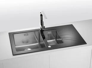 Alveus Karat Up 20 Zlewozmywak szklany półtorakomorowy 86x50 cm lewy czarny/satyna 1123806