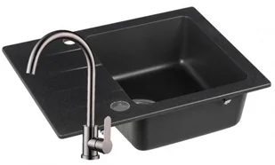 Zlewozmywak Granitowy COAST 25 czarny nakrapiany z baterią stal