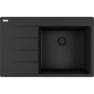 Zlewozmywak wpuszczany w blat Centro CNG 611-78 TL w kolorze onyx został wyposażony w odpływ w czarnym macie, tworząc harmonijną całość, która sprawi, że Twoja kuchnia nabierze głębi i oryginalnego sznytu. Ten model posiada głęboką komorę, praktyczny ociekacz po lewej stronie, na którym osuszysz umyte naczynia oraz półkę pod baterie, która ułatwia montaż baterii oraz dodatkowych akcesoriów, dzięki podfrezowanym otworom. Linię Centro cechuje minimalistyczny design z prostymi, gładkimi liniami oraz funkcjonalny i estetyczny ukryty przelew. Zlewozmywak został wyprodukowany z materiału Fragranite, który składa się w 80% z naturalnego granitu, a jego wyjątkowo gładka powierzchnia skutecznie utrudnia osadzanie i rozwój bakterii. Zlew granitowy Franke jest odporny na zarysowania, uderzenia i zaplamienia oraz krótkotrwałe działanie wysokiej temperatury. Model zawiera w zestawie korek zatyczkowy Color Line 3 1/2".