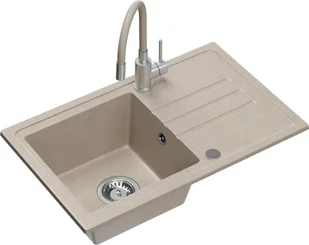 Zestaw zawiera zlewozmywak BEN 111 GraniteQ river sand + bateria kuchenna MAGGIE z elastyczną wylewką + zaślepka + syfon save space z odpływem 3,5" stalowy