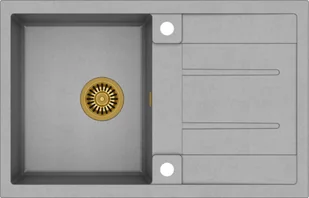 Zlewozmywak GraniteQ szary metalik MORGAN 111 + syfon z odpływem 3,5" SteelQ złoty Materiał: GraniteQ Minimalna podbudowa: od 450mm Wymiary zlewozmywaka: 780x500mm Wymiary komór: 430x360x195mm Odpływ: