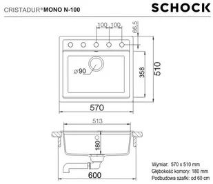 Schock Mono N-100 Zlewozmywak granitowy jednokomorowy 57x51 cm Cristadur polaris MONN100POL - Napisz do nas i zyskaj dodatkowy rabat