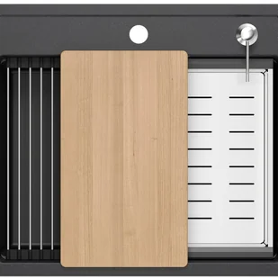 Dodatkowo, na powierzchni komory swoje miejsce znajduje deska, co pozwala na efektywne wykorzystanie przestrzeni roboczej. Połączenie tych elementów czyni zlewozmywak Dario wszechstronnym narzędziem – idealnym zarówno do krojenia, odkładania naczyń, jak i suszenia. W praktyce użytkownik zyskuje dodatkową, wielofunkcyjną przestrzeń w kuchni, co jest szczególnie przydatne w codziennych czynnościach, a także w trakcie większych przygotowań kulinarnych.